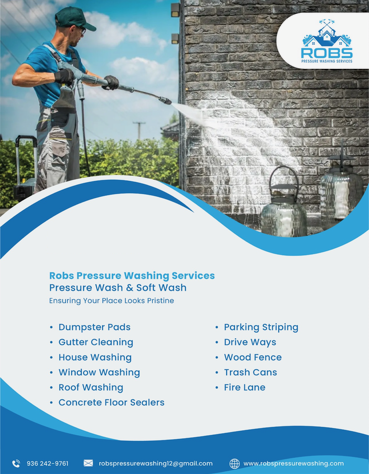 We also offer RV detailing, RV pressure washing, RV cleaning, RV roof sealer services, truck trailer washing, and concrete floor sealing to ensure properties and vehicles are both clean and durable. Each service is carefully tailored to meet the highest standards, combining seasoned expertise with advanced applications. Robs Pressure Washing Services takes pride in every project, delivering lasting results that leave every surface in pristine condition. Give us a call today for a free estimate!